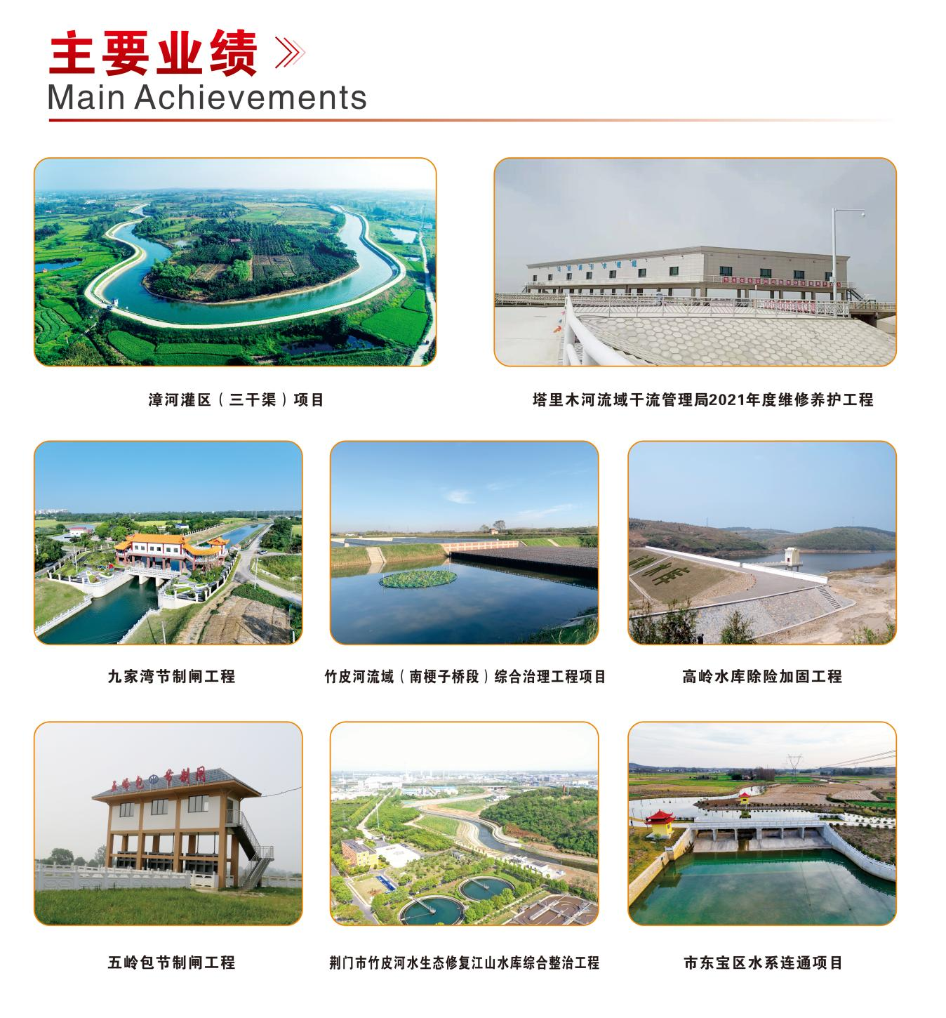 承建的湖北省漳河灌區(qū)續(xù)建配套與節(jié)水改造工程被國家水利部、省水利廳授予“文明工地”稱號;承建的湖北省漳河灌區(qū)三干渠續(xù)建配套與節(jié)水改造工程、漢北河防洪治理工程、漢西水系連通工程、東寶區(qū)水系連通工程等項目獲得“湖北省水利工程優(yōu)質(zhì)獎(江漢杯)”榮譽稱號。
