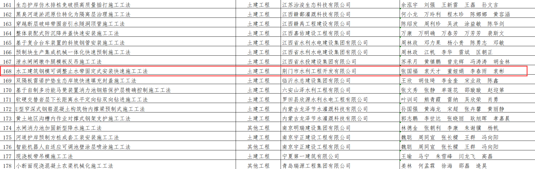 近日,中國水利工程協(xié)會公布了2025年度水利行業(yè)工法名單,荊門市城市水務(wù)集團(tuán)有限公司下屬單位荊門市水利工程開發(fā)有限公司(以下簡稱“荊門水發(fā)”)申報的“水工建筑鋼??烧{(diào)整止水帶固定式安裝快速施工工法”順利通過評審,正式被確認(rèn)為中國水利行業(yè)工法,為水利工程標(biāo)準(zhǔn)化、高效化建設(shè)提供了有力支撐。