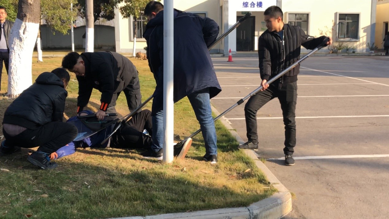 演練中,兩名暴恐分子打著送快遞的幌子相互配合分散門衛(wèi)注意力,然后手持兇器強(qiáng)行闖入加壓站生產(chǎn)區(qū)企圖施暴,門衛(wèi)發(fā)現(xiàn)并阻止無效后吹響了警示哨。收到警示信號(hào),反恐組副組長(zhǎng)第一時(shí)間沖出辦公室,攔截欲前往中心控制室的暴恐分子,并讓辦公室工作人員撥打110報(bào)警,在與兩名恐暴分子交涉無果后,反恐組組長(zhǎng)警哨長(zhǎng)鳴并立即啟動(dòng)供水總公司加壓站反恐防爆應(yīng)急預(yù)案,發(fā)布緊急命令,站內(nèi)反恐暴人員拿起武器從維修班一涌而出將兩名恐暴分子團(tuán)團(tuán)圍住,以防其進(jìn)入站內(nèi)制水車間及清水池,造成人員傷亡,影響全城供水。經(jīng)過配合圍捕等一系列行動(dòng)后,最終將暴恐分子制服。