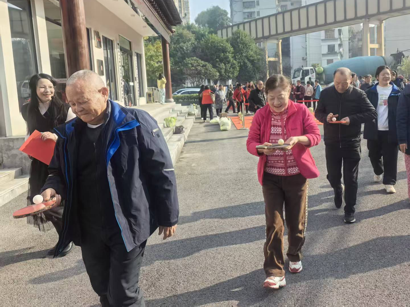 趣味保齡球項目中,老人們瞄準塑料瓶陣滾球,擊倒瓶子時的歡呼聲此起彼伏;歡樂套圈前,大家瞄準蔬菜、油鹽醬醋等生活物資投擲,有人接連套中獎品,開心得像個孩子;球拍托球健步走環(huán)節(jié),老人們小心翼翼托球前行,現(xiàn)場滿是歡聲笑語。